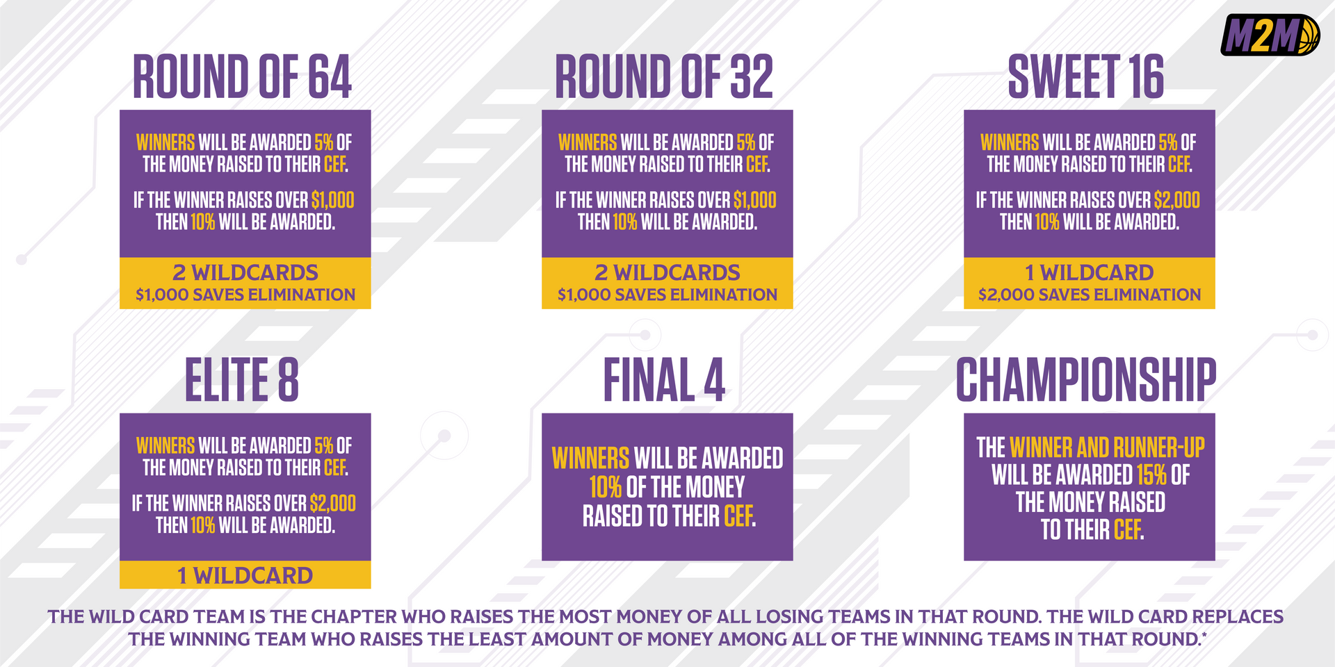 to the next Round. Each Round’s winning Chapter keeps a percentage of the money they raise to fund their own Chapter Education Fund (CEF).